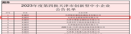 2023年,新材料公司深入落實(shí)集團(tuán)全面創(chuàng)新發(fā)展戰(zhàn)略,通過(guò)產(chǎn)品分級(jí)、原料資源開發(fā)、技術(shù)及工藝創(chuàng)新、組織效能優(yōu)化等舉措,加速產(chǎn)品研發(fā),加快高成長(zhǎng)企業(yè)梯度培育,在生產(chǎn)經(jīng)營(yíng)、企業(yè)培育、組織建設(shè)等方面逐步邁向高質(zhì)量發(fā)展。天津市金橋新材料有限公司被評(píng)定為“2023年第四批入庫(kù)雛鷹企業(yè)”,“第9批入庫(kù)科技型中小企業(yè)”,“第四批創(chuàng)新型中小企業(yè)”。