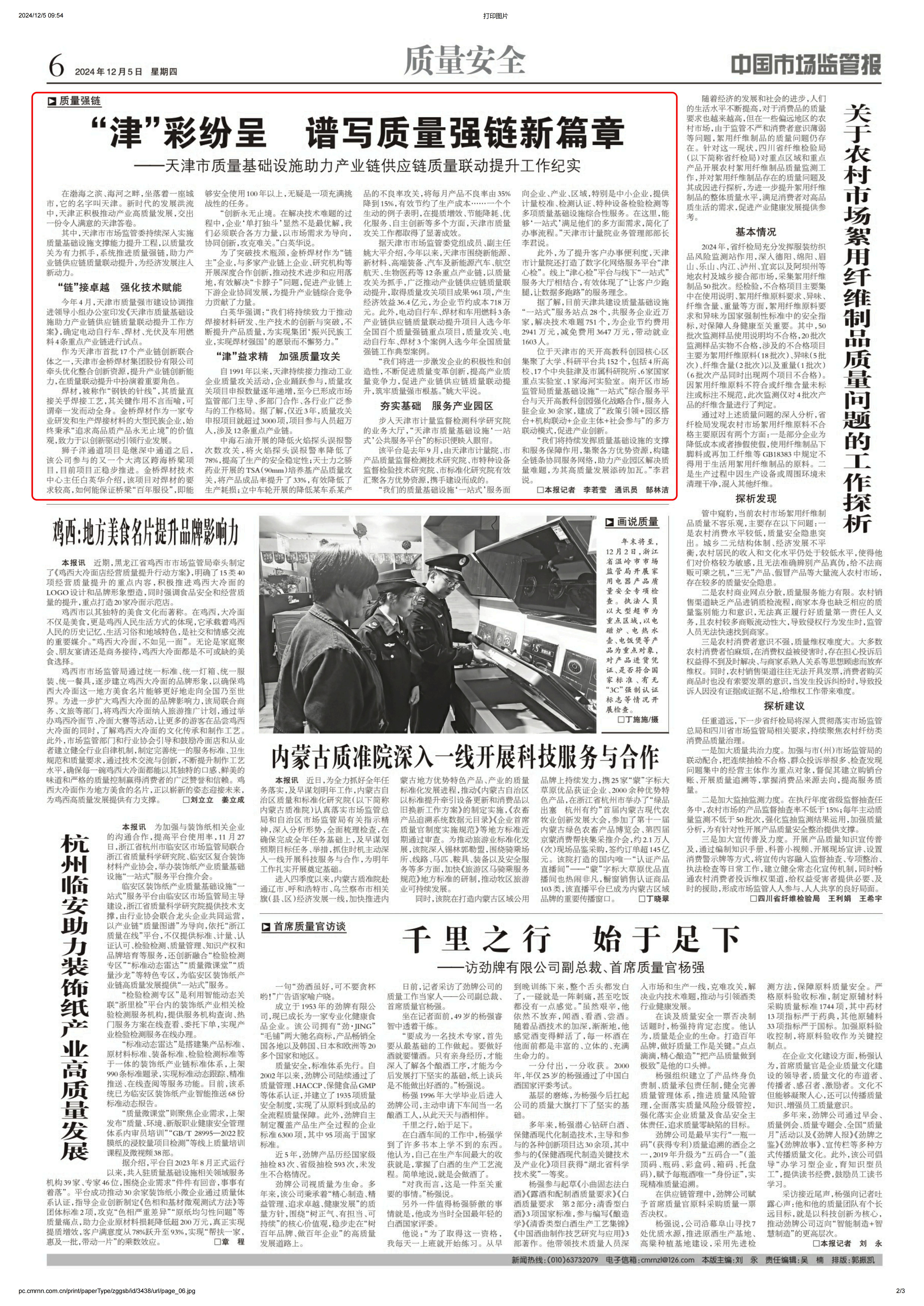 其中,天津市市場監(jiān)管委持續(xù)深入實(shí)施質(zhì)量基礎(chǔ)設(shè)施支撐能力提升工程,以質(zhì)量攻關(guān)為有力抓手,系統(tǒng)推進(jìn)質(zhì)量強(qiáng)鏈,助力產(chǎn)業(yè)鏈供應(yīng)鏈質(zhì)量聯(lián)動(dòng)提升,為經(jīng)濟(jì)發(fā)展注入新動(dòng)力。