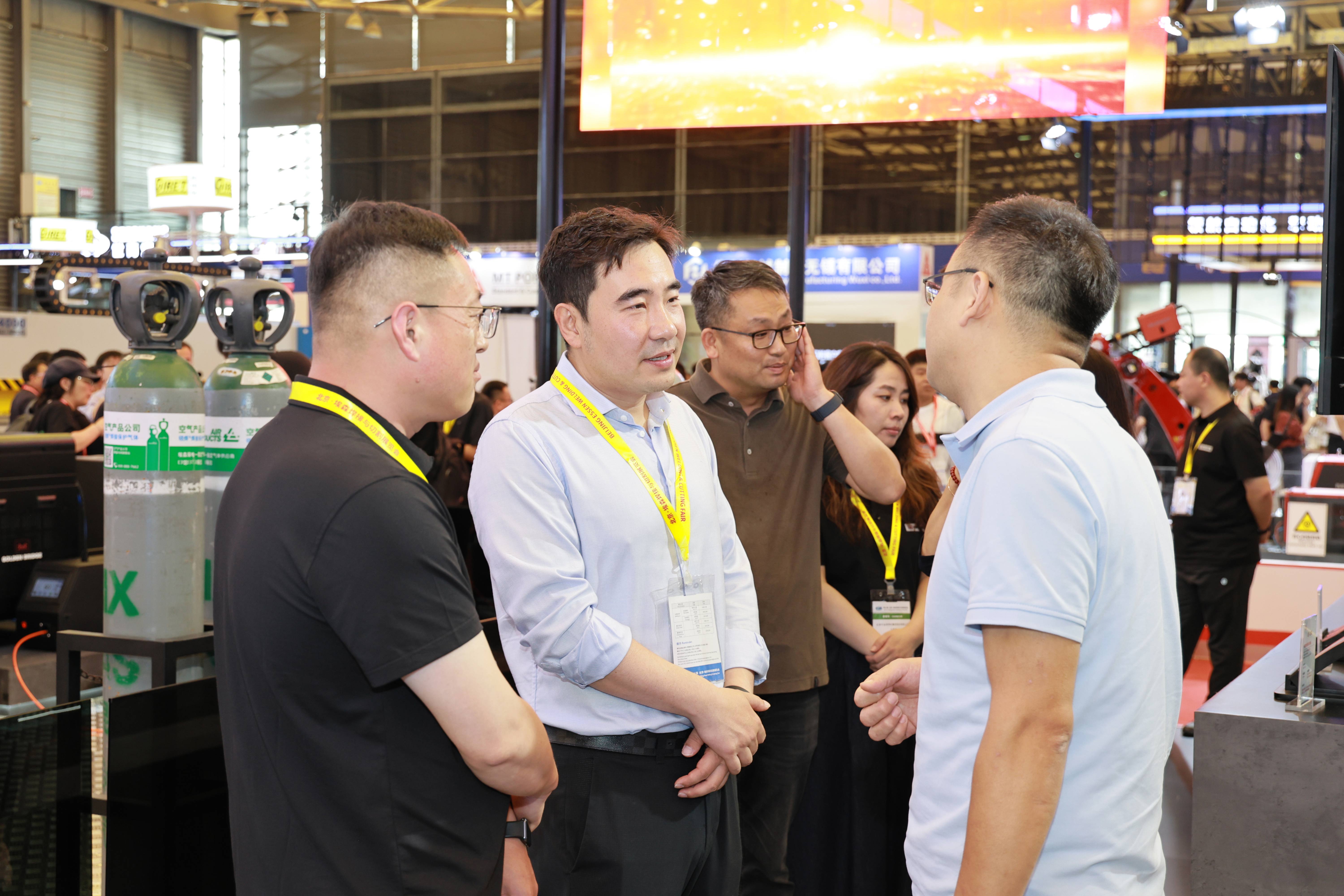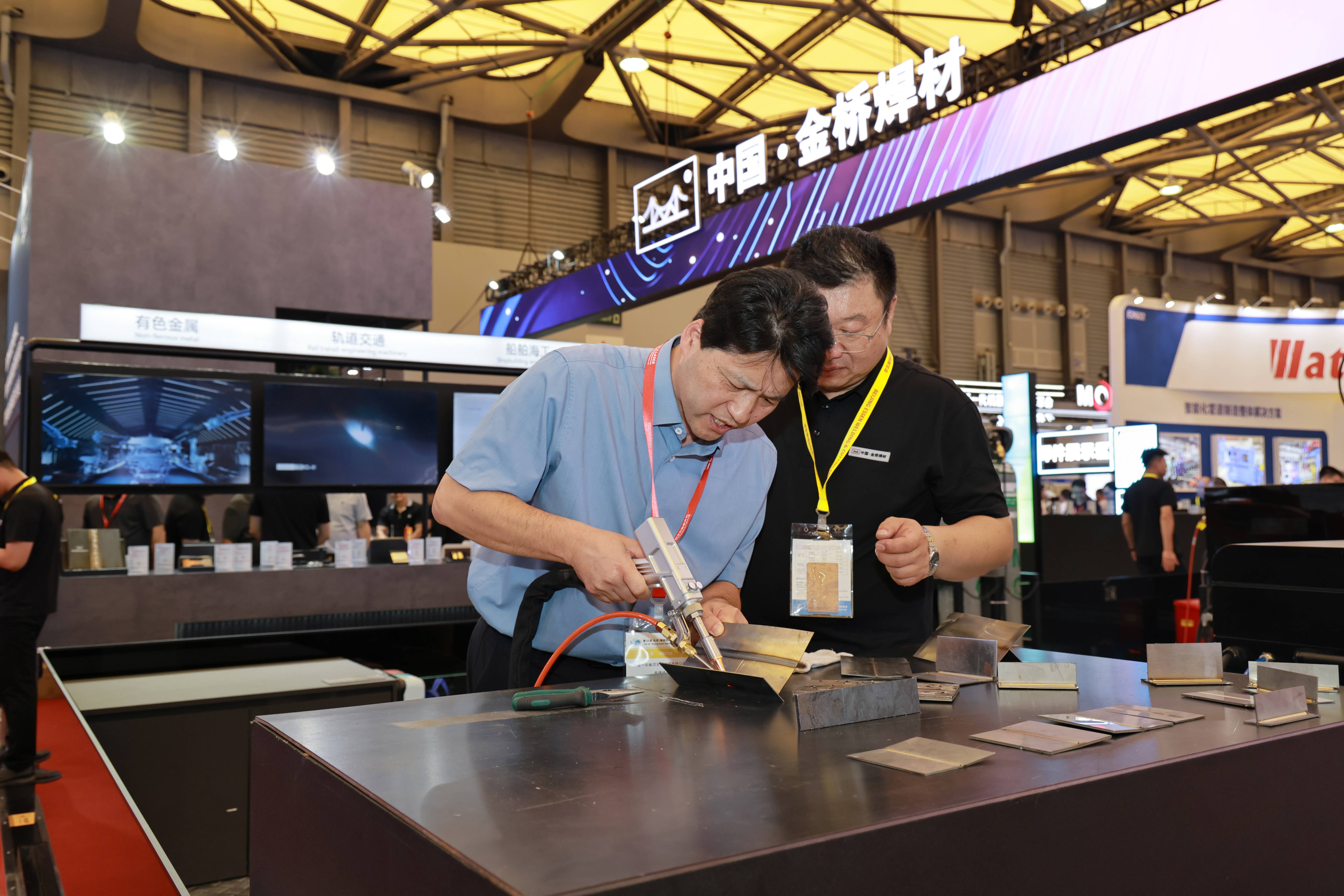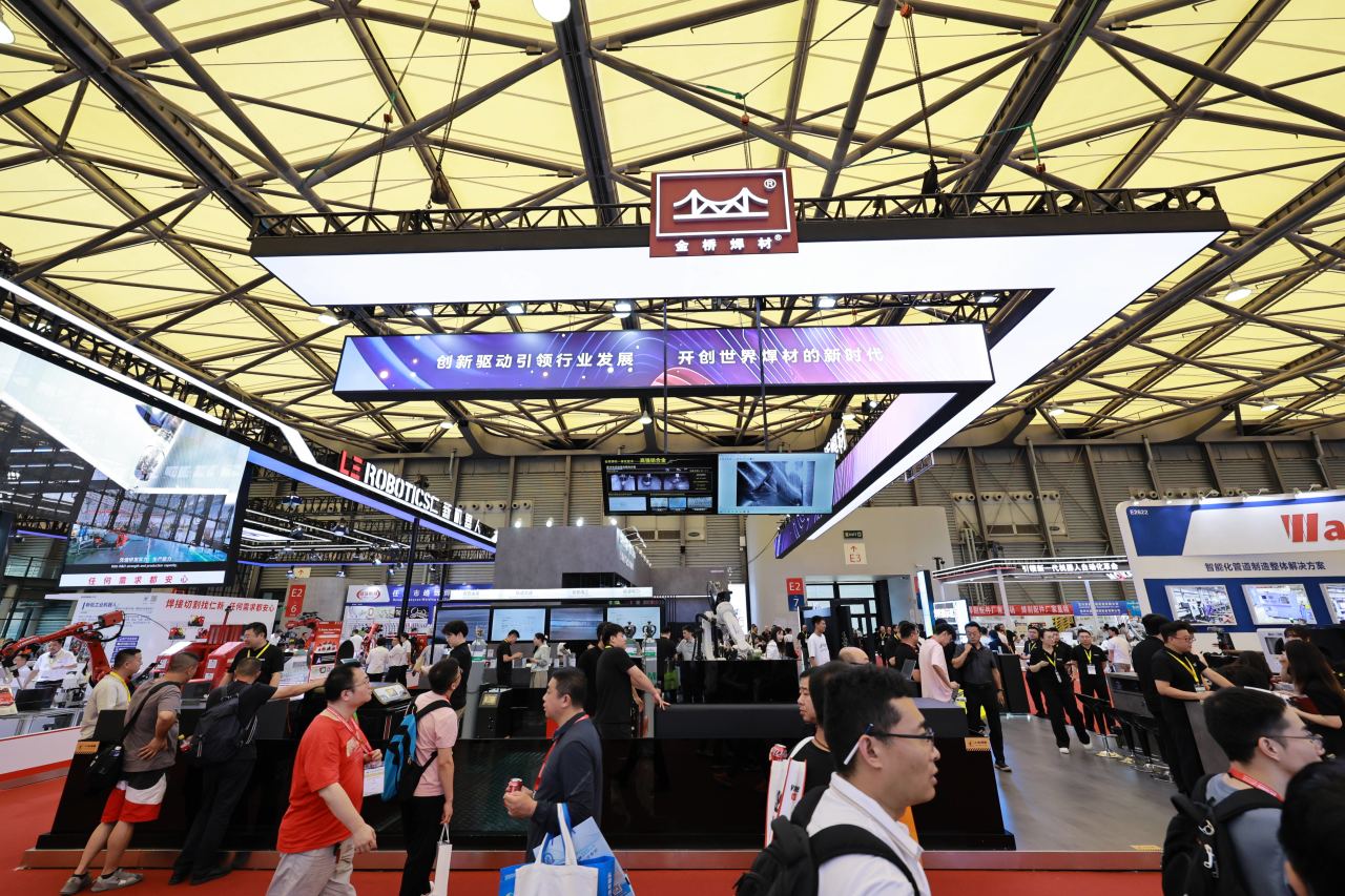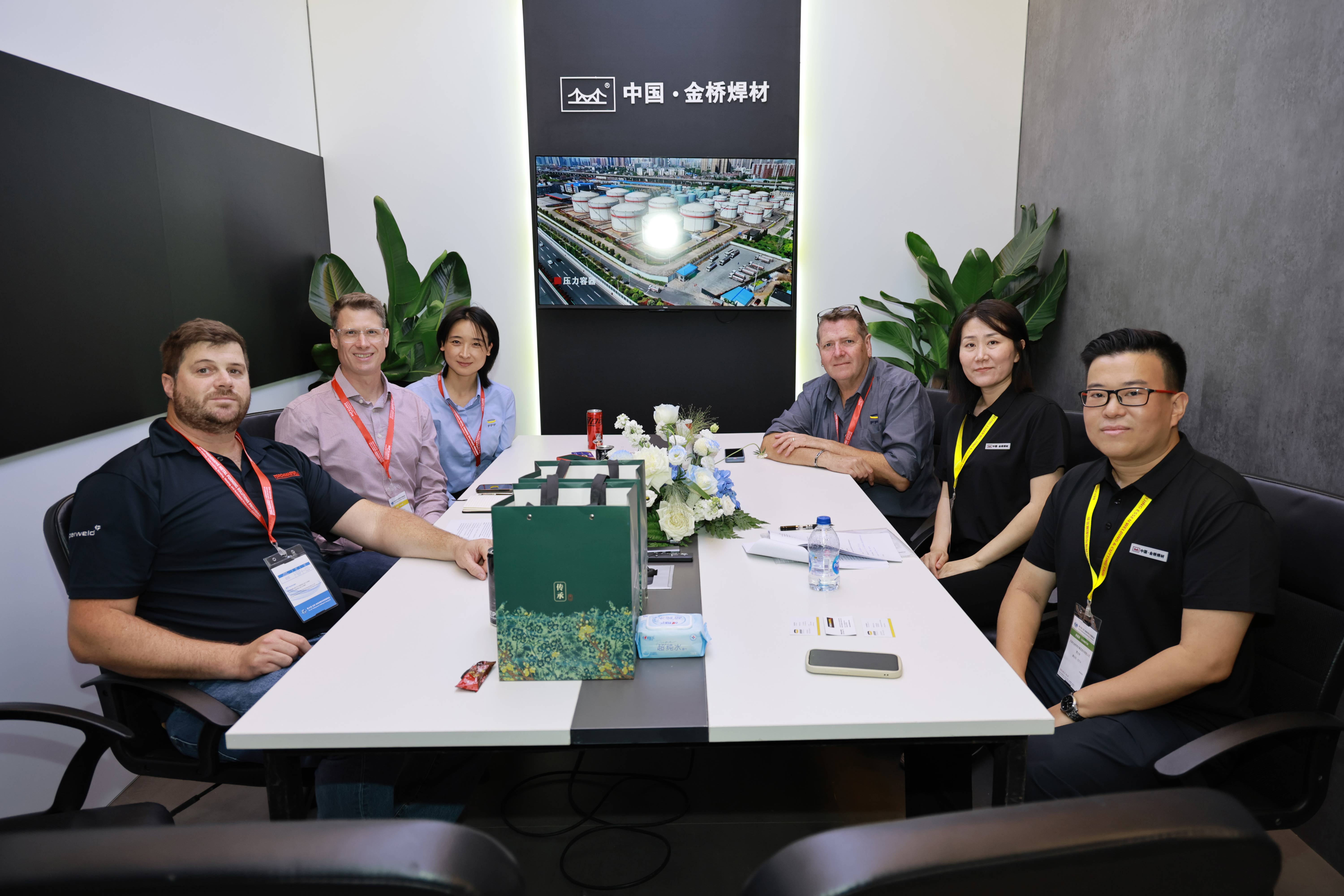 四大行業(yè)展示區(qū)、試焊區(qū)和焊件展示區(qū)人流如織,熱鬧非凡?,F(xiàn)場客戶咨詢了高強(qiáng)鋼焊接工藝涵蓋的方面及熔斷效果、成型效果,鋁合金雙脈沖工藝在汽車底盤等方面的應(yīng)用等情況。船舶行業(yè)客戶詢問了JQ.YJ503MX-1高效金屬粉芯型藥芯焊絲的產(chǎn)品情況,對產(chǎn)品性能和價(jià)格進(jìn)行了接洽溝通,約定后期可進(jìn)行試用。家電行業(yè)客戶咨詢了銀釬料產(chǎn)品,表示后續(xù)會大力跟進(jìn)開發(fā),集團(tuán)將根據(jù)客戶需求進(jìn)行工藝改善與優(yōu)化。來自巴西的國際客戶詢問了無鍍銅實(shí)心焊絲產(chǎn)品,并對集團(tuán)高端藥芯焊絲產(chǎn)品密切關(guān)注,表現(xiàn)出進(jìn)一步合作意向。來自斯洛伐克的老客戶詢問了高端實(shí)心焊絲、藥芯焊絲產(chǎn)品及金橋“焊接一體化”服務(wù),表示會繼續(xù)加強(qiáng)合作,促進(jìn)與金橋焊材的合作共贏。