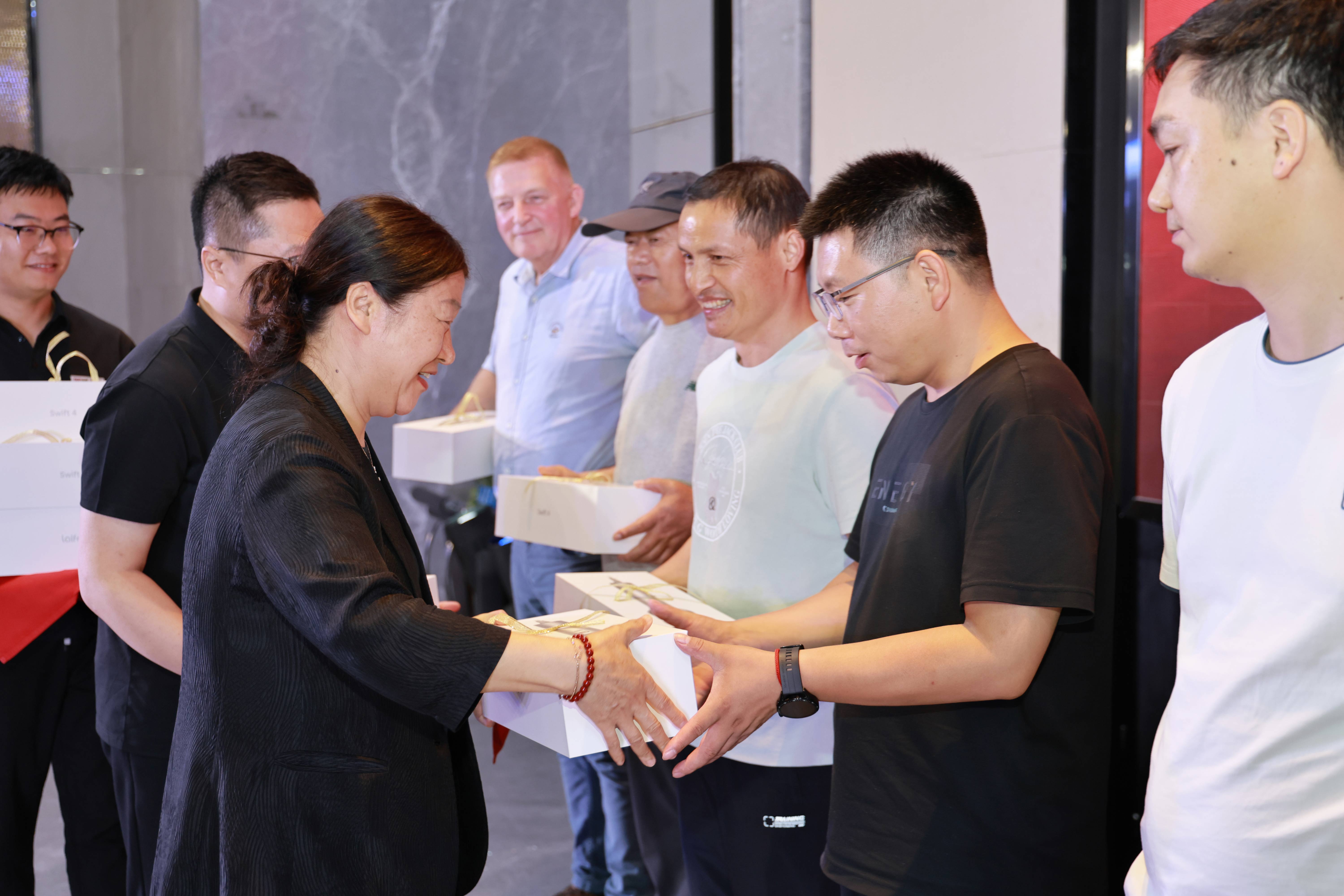? 晚宴進(jìn)行中,精心設(shè)計(jì)的互動(dòng)環(huán)節(jié)將氣氛不斷推向高潮。今晚的送驚喜環(huán)節(jié),集團(tuán)領(lǐng)導(dǎo)為經(jīng)銷(xiāo)商送上了真誠(chéng)的生日祝福和禮品。隨之而來(lái)的一輪輪大屏抽獎(jiǎng)活動(dòng),更是讓現(xiàn)場(chǎng)歡呼迭起,驚喜連連。晚宴在暖心愉悅的氛圍中接近尾聲。